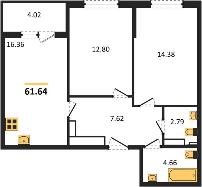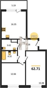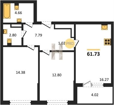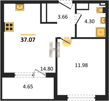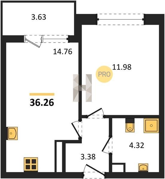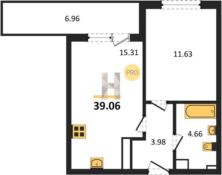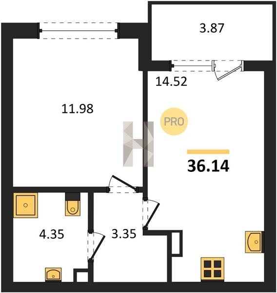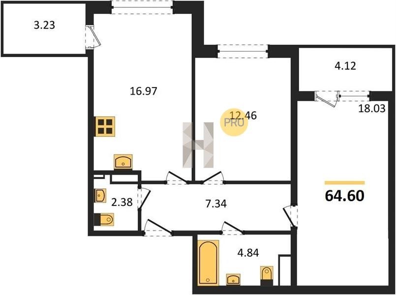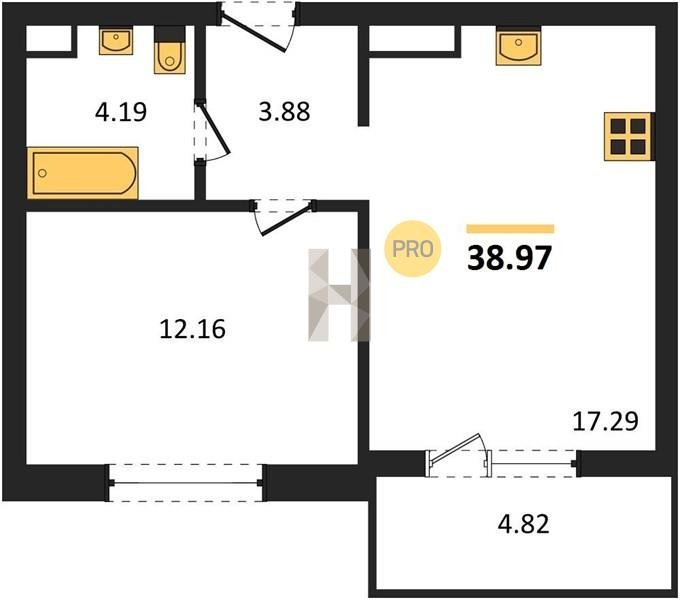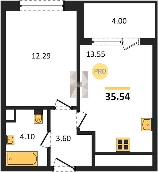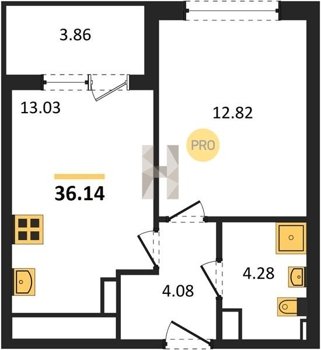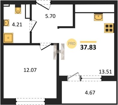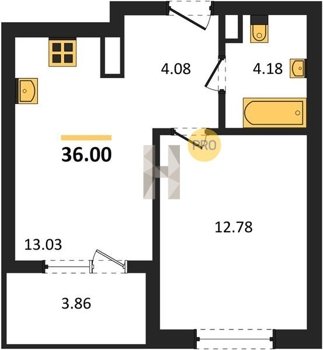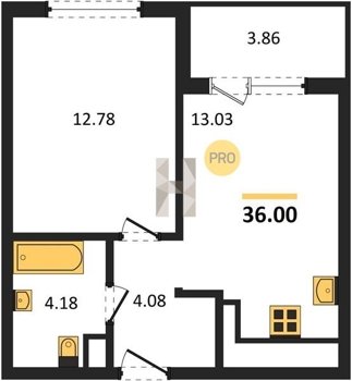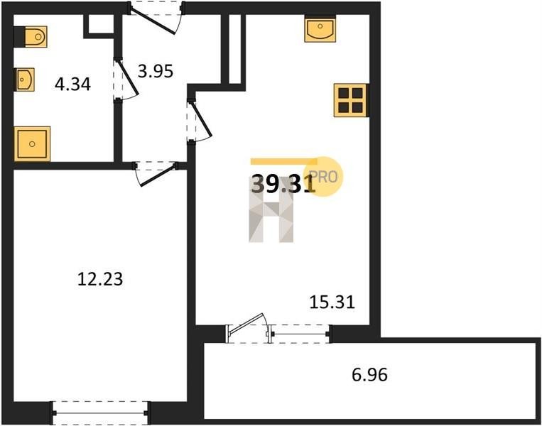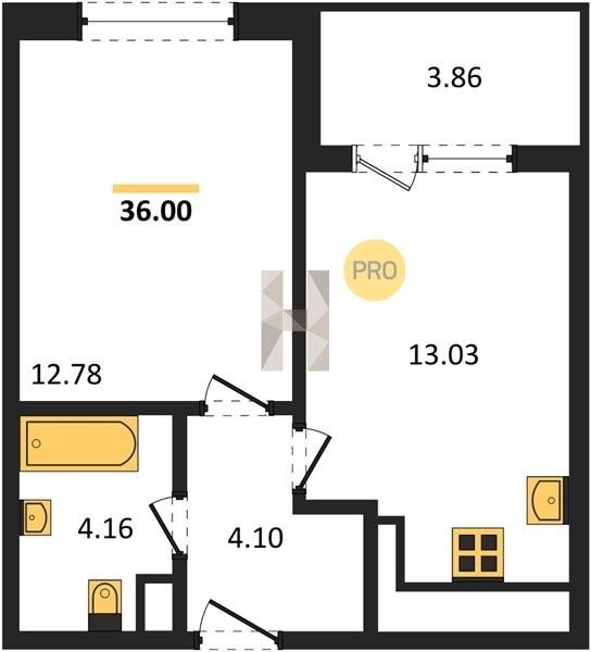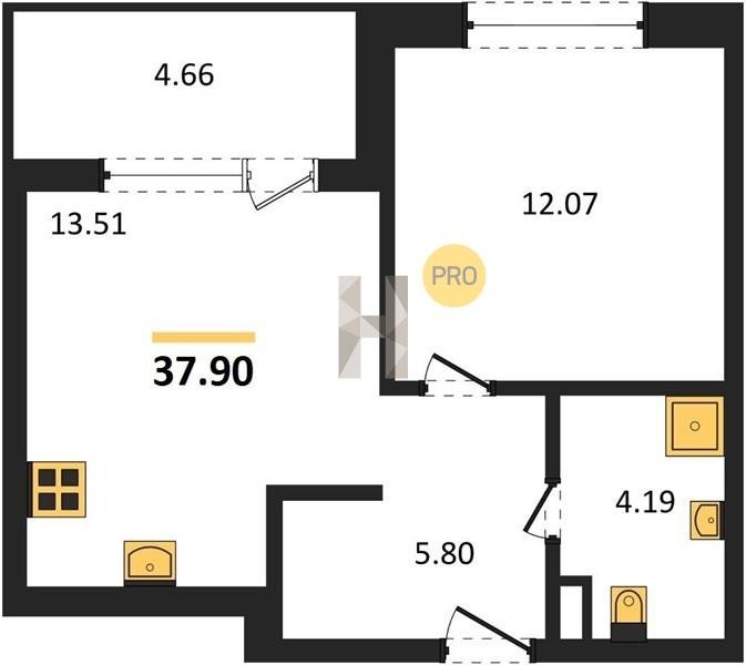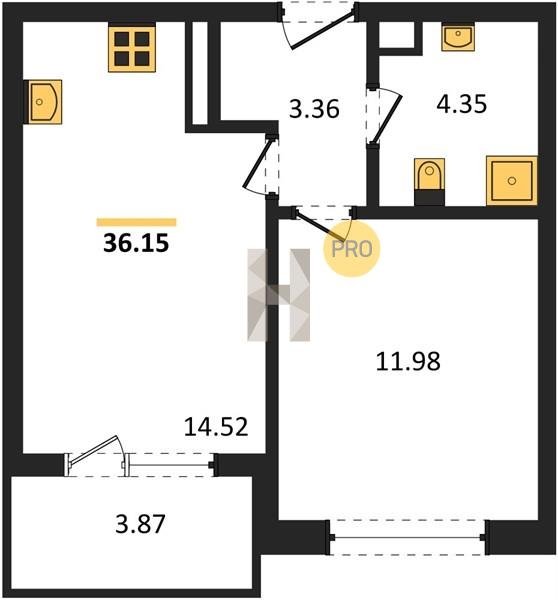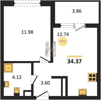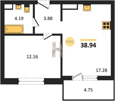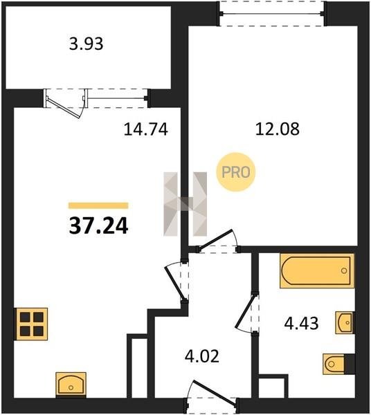 Площадь от 34.18 м2
