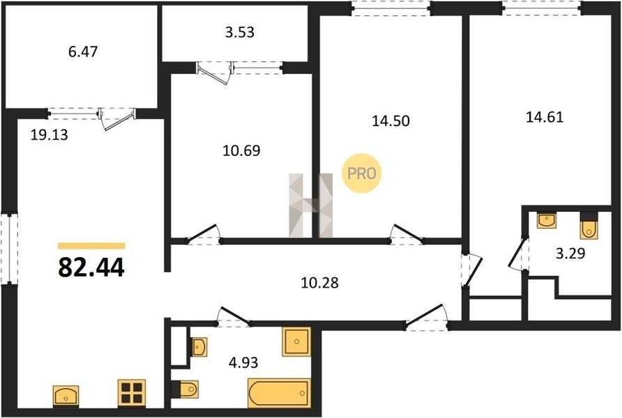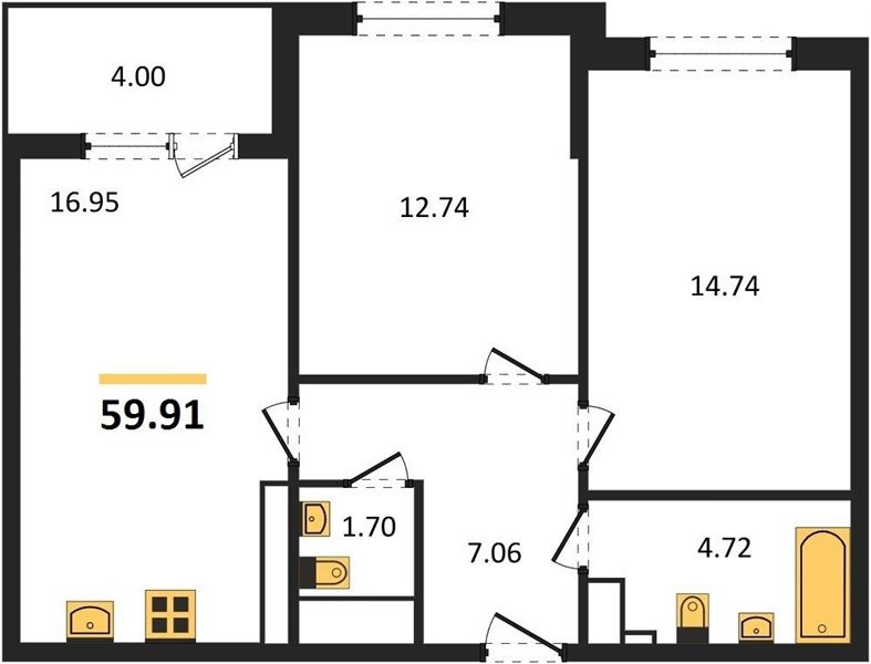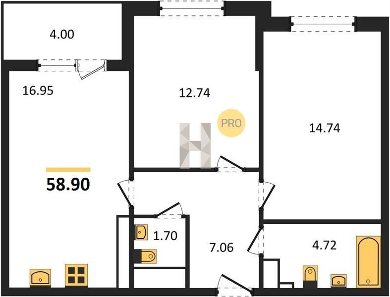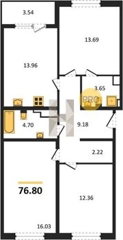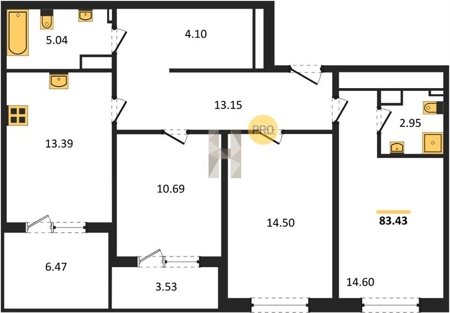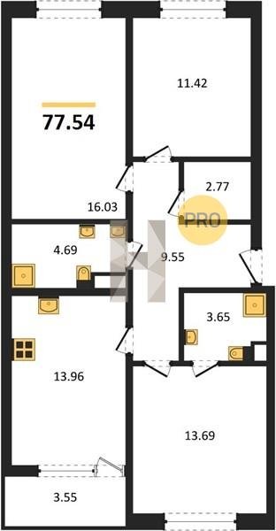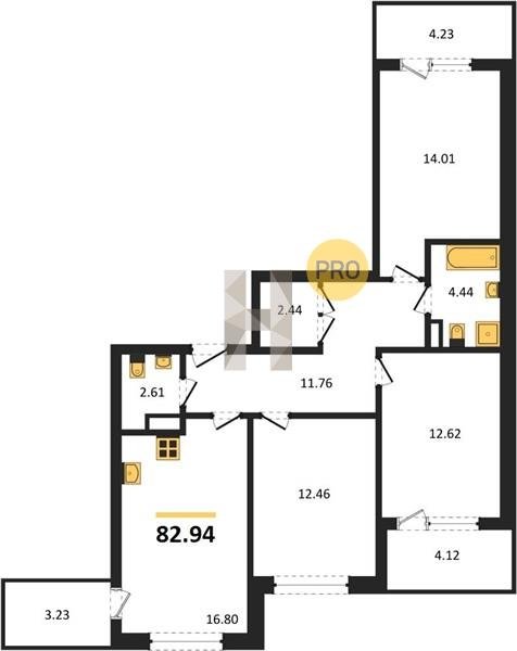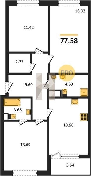 Площадь от 70.25 м2