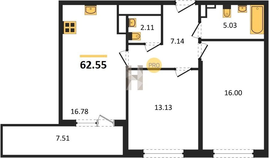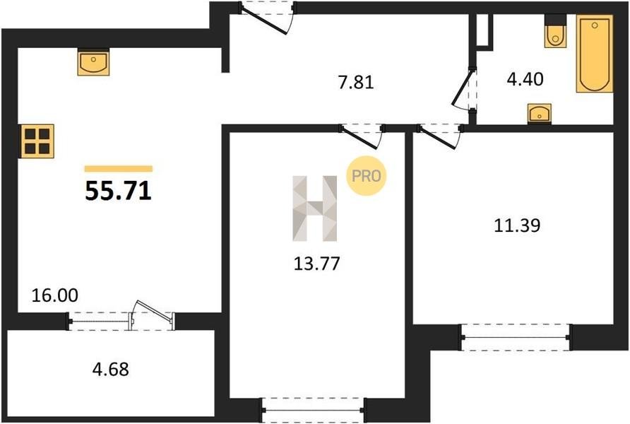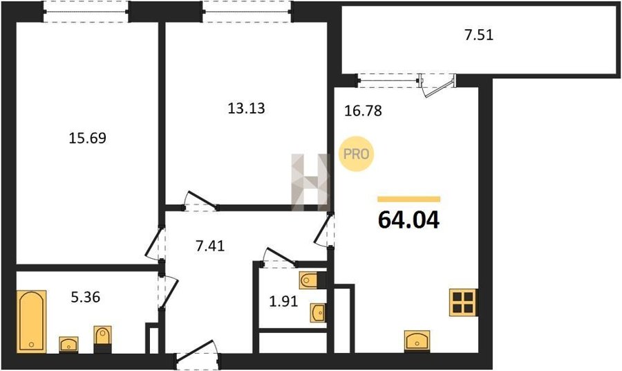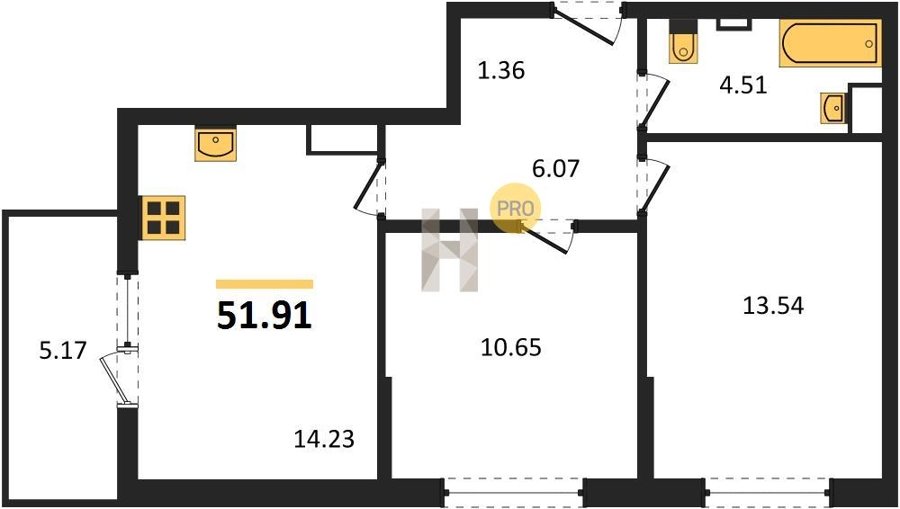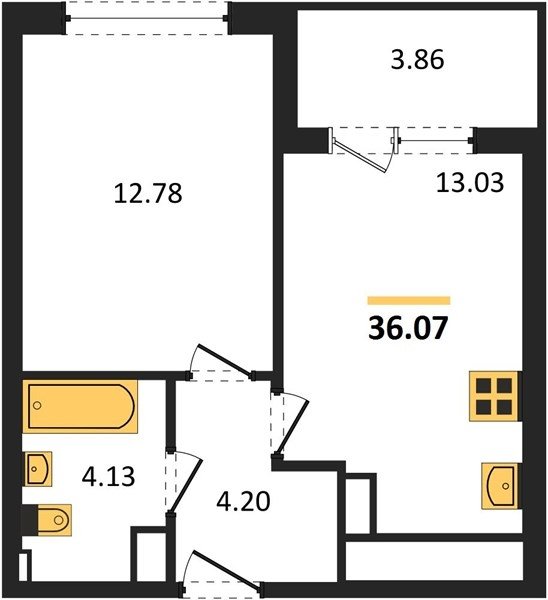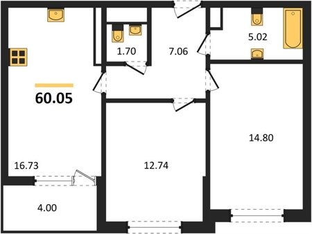 Площадь от 22.07 м2
