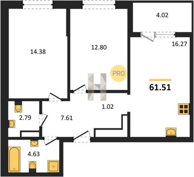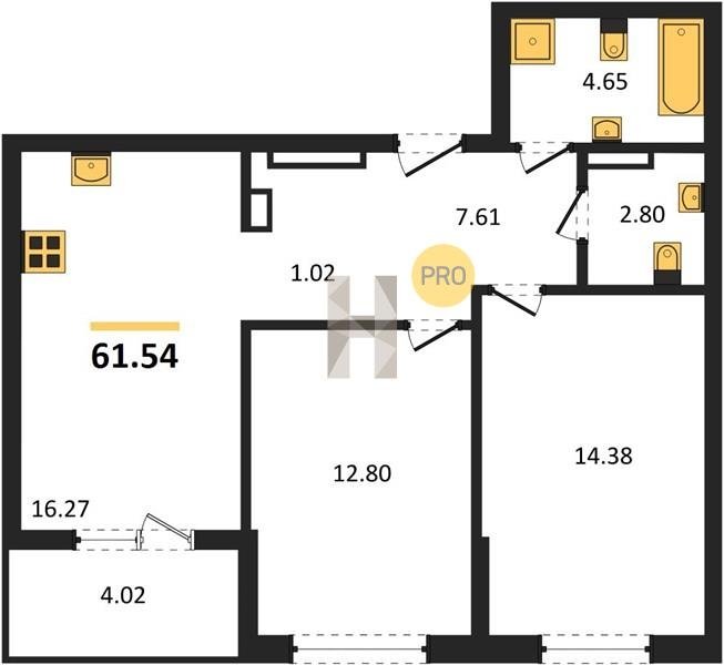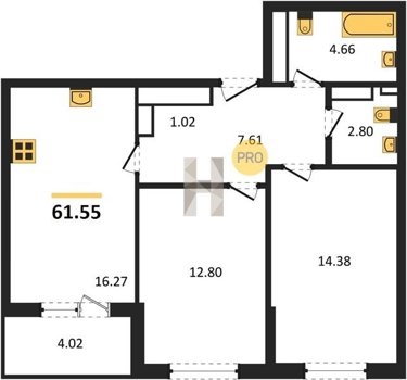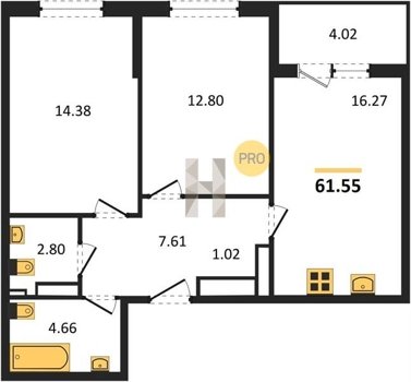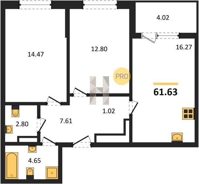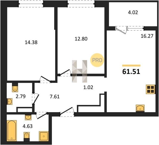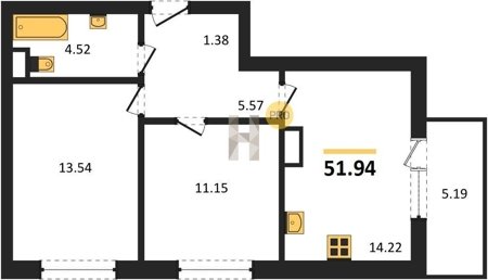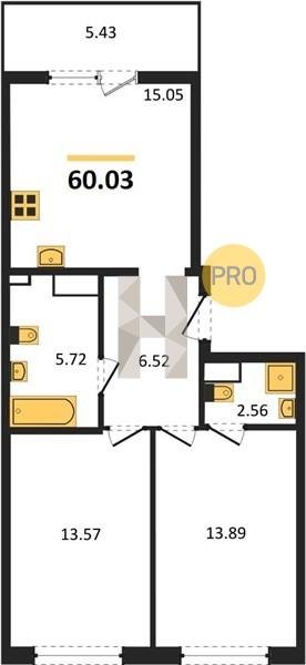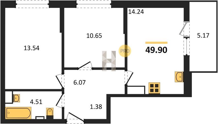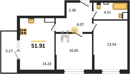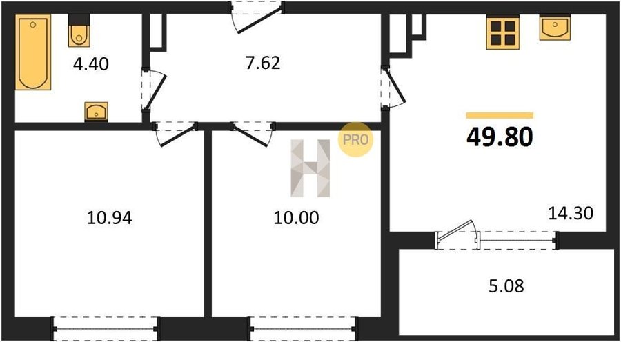 Площадь от 49.8 м2