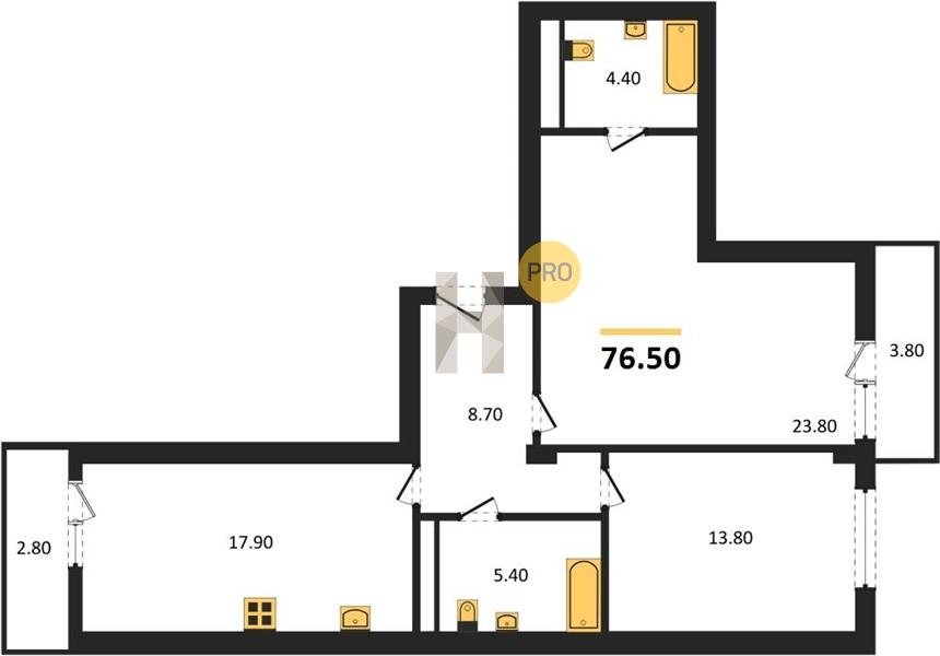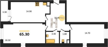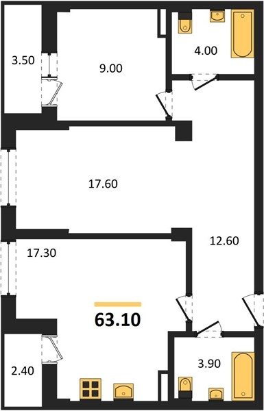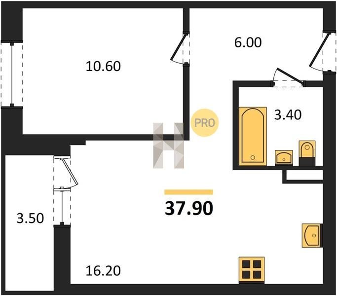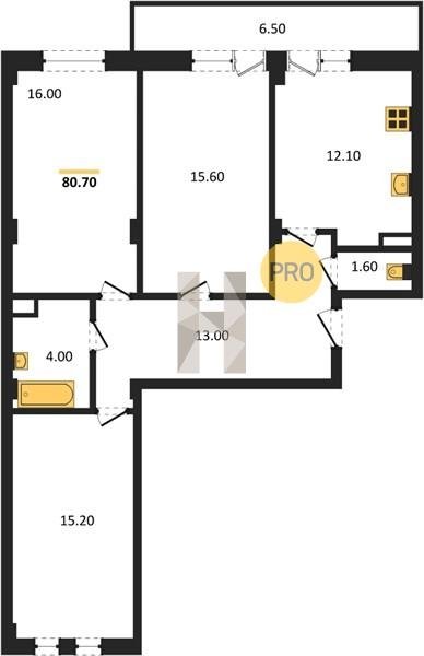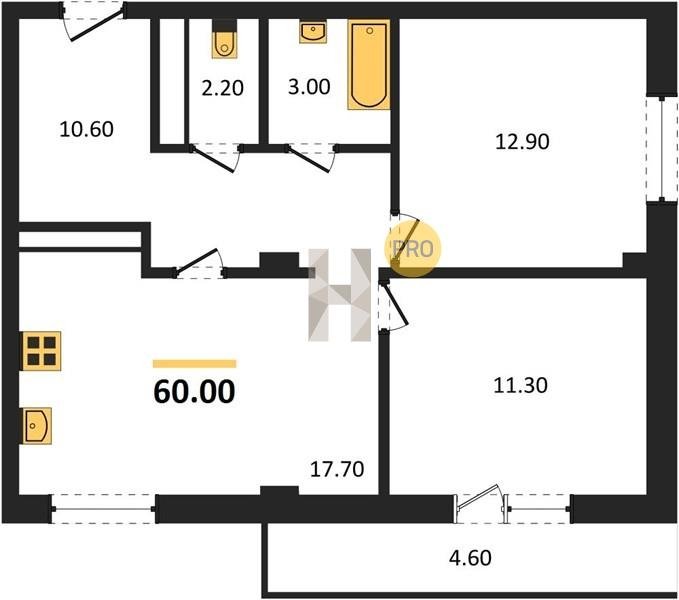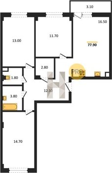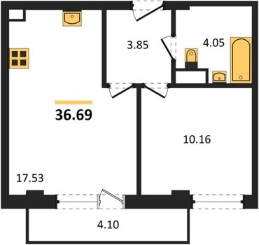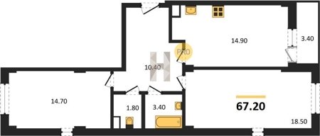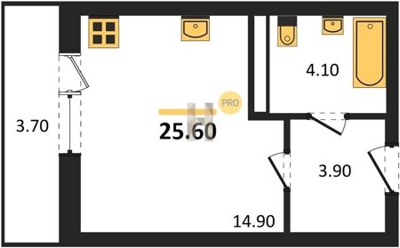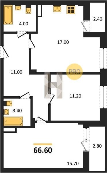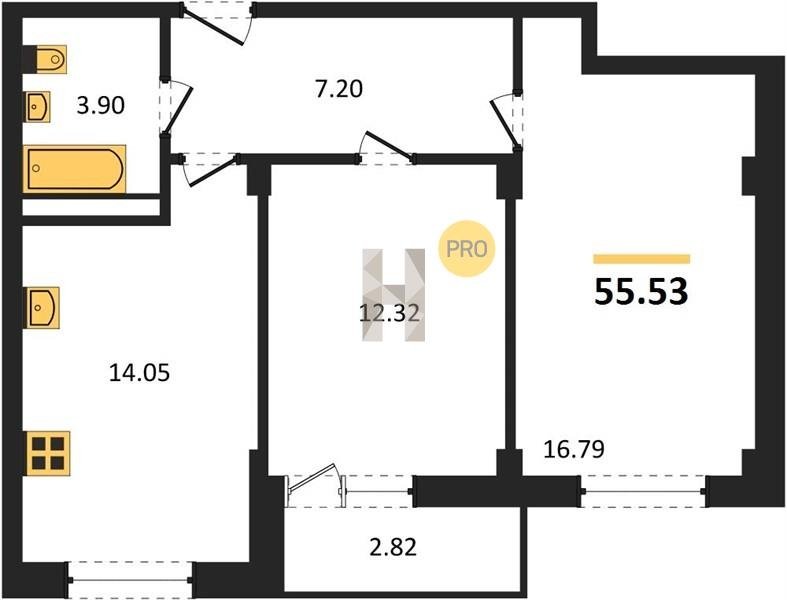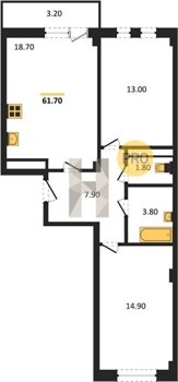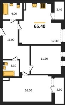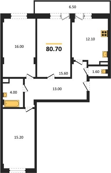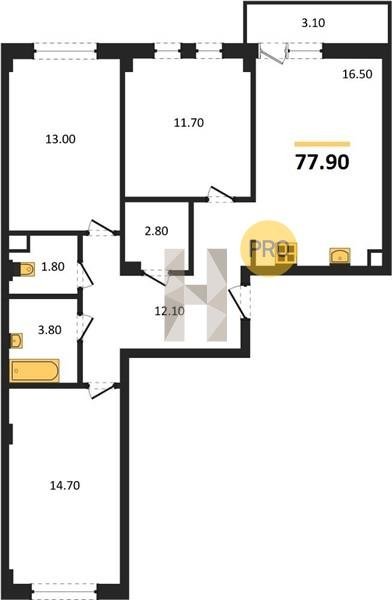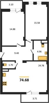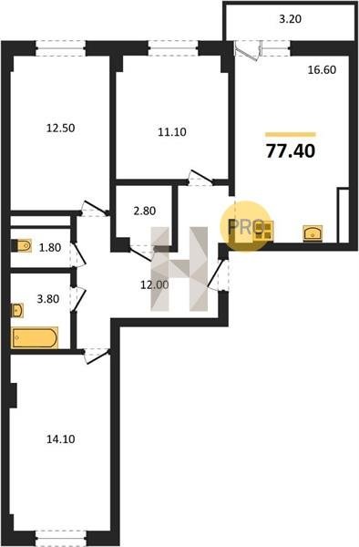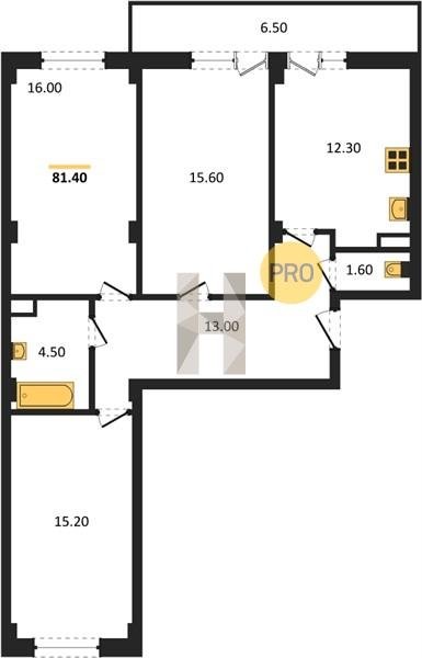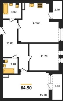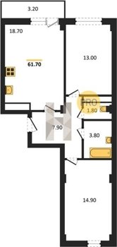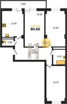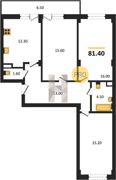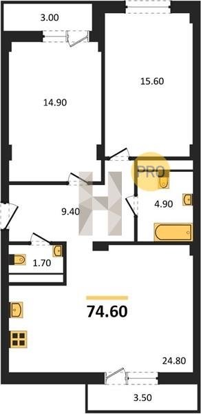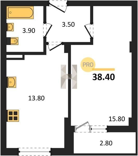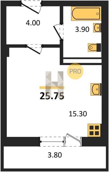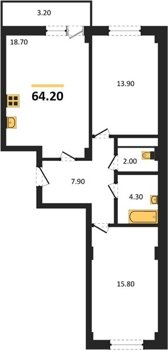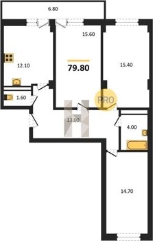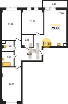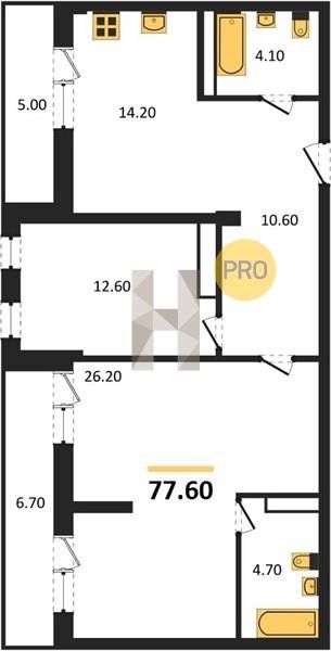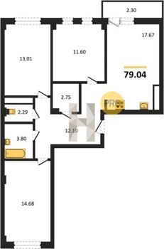 Площадь квартир разная: от 26 (для небольших однокомнатных объектов) до 79 квадратных метров (для трехкомнатных).