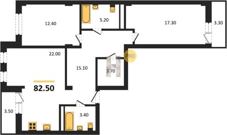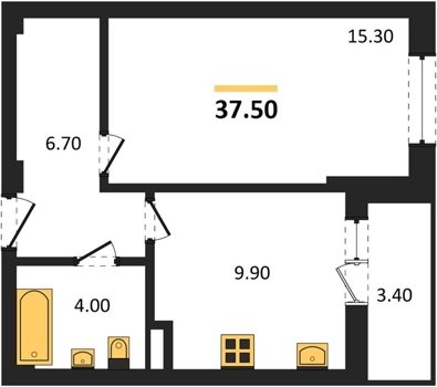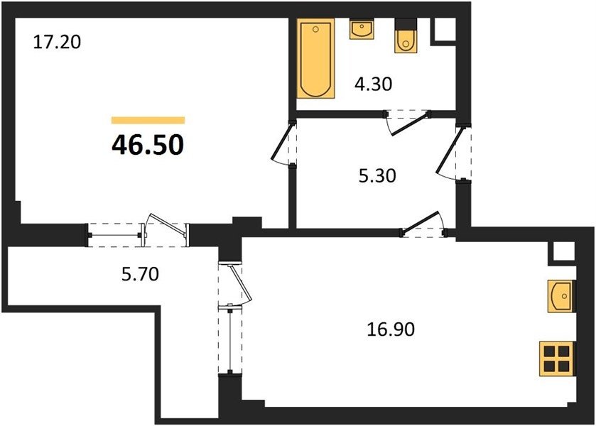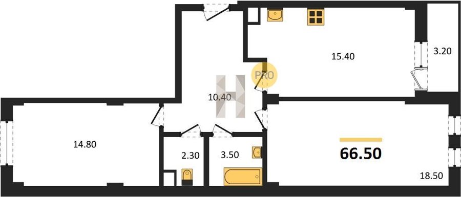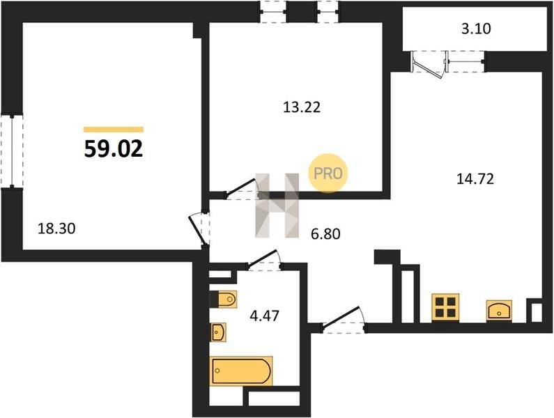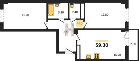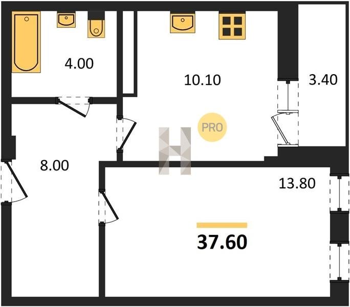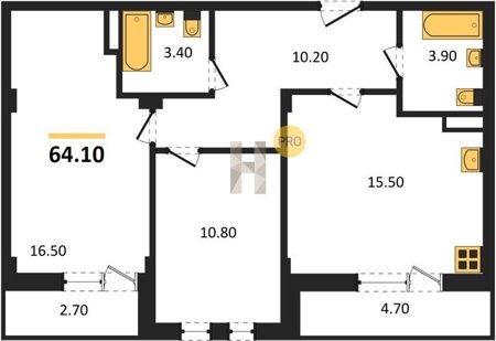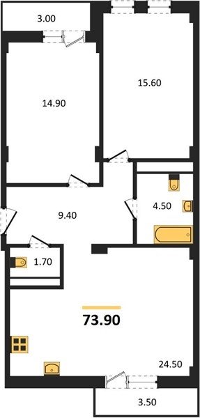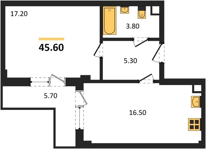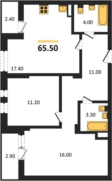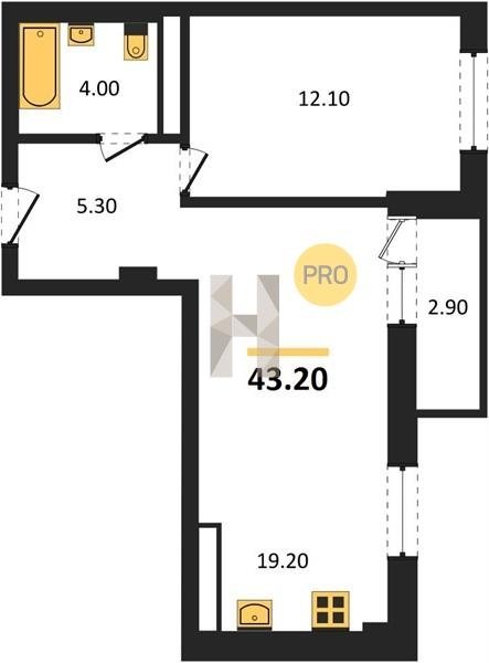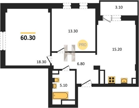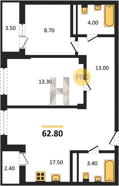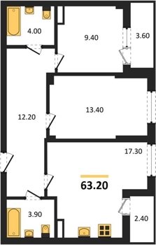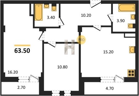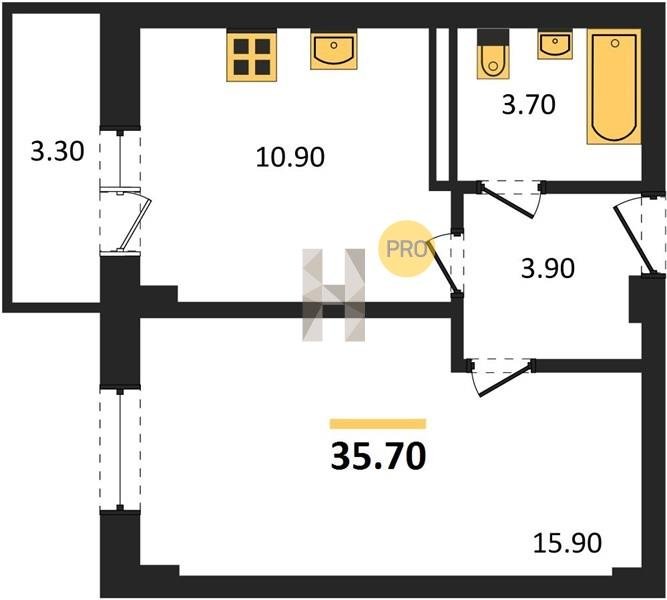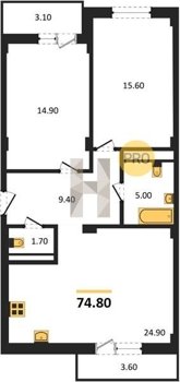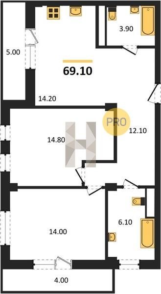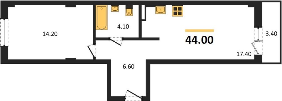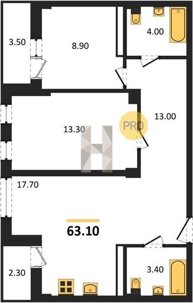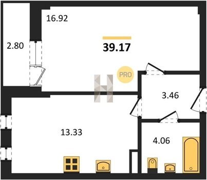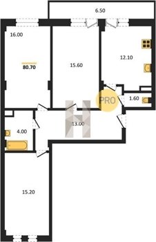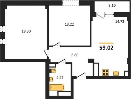 Площадь квартир разная: от 26 (для небольших однокомнатных объектов) до 79 квадратных метров (для трехкомнатных).