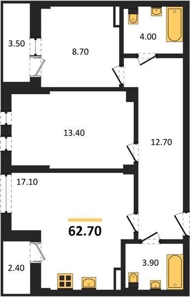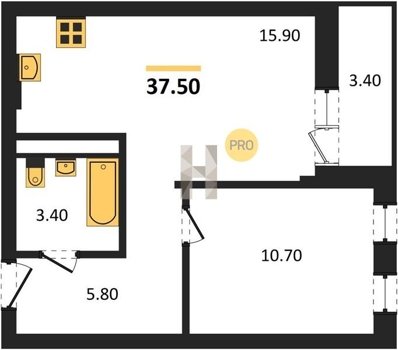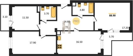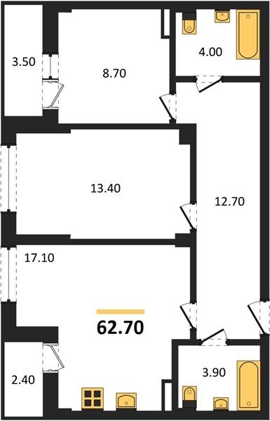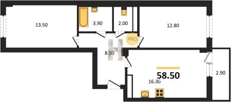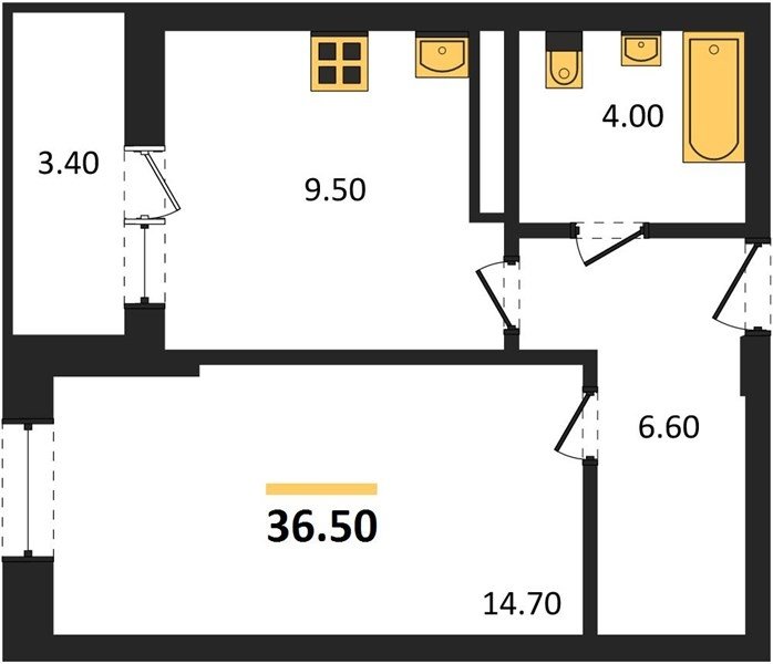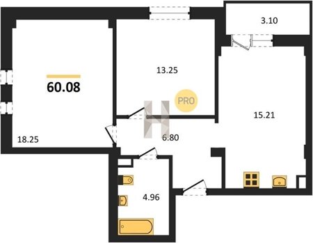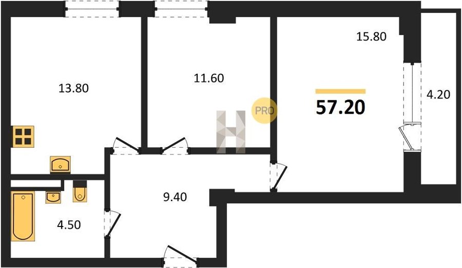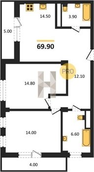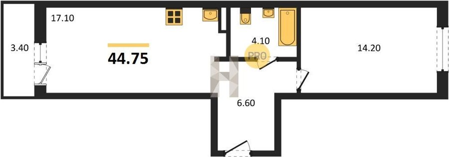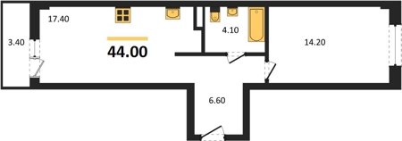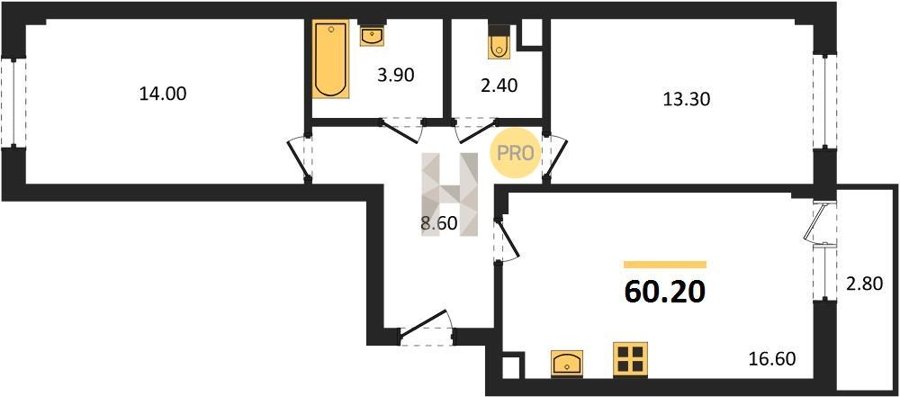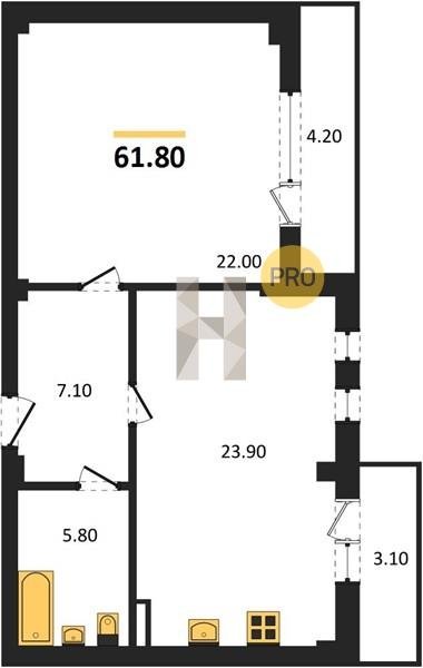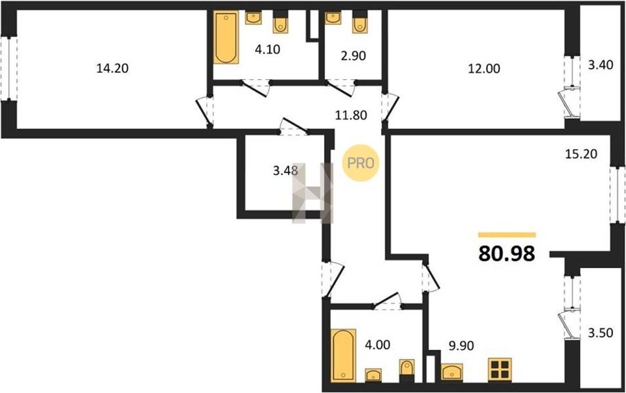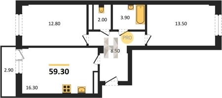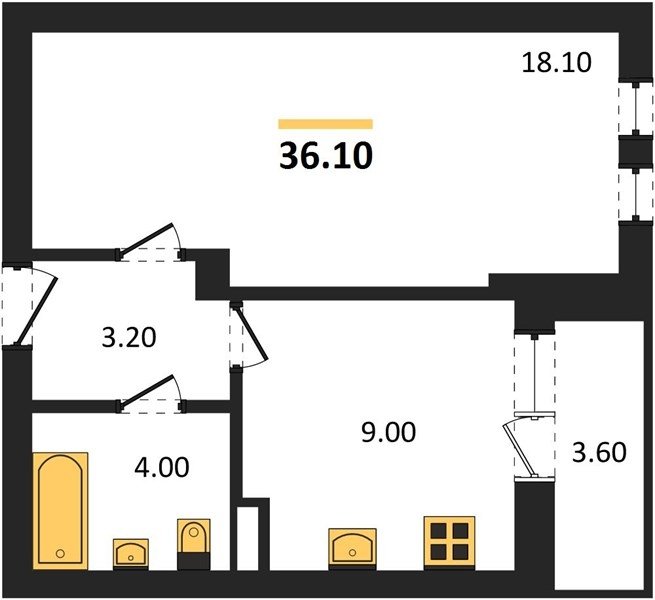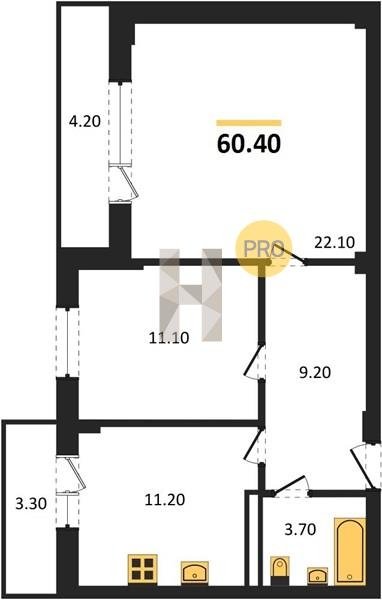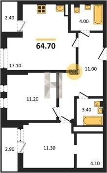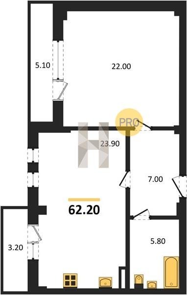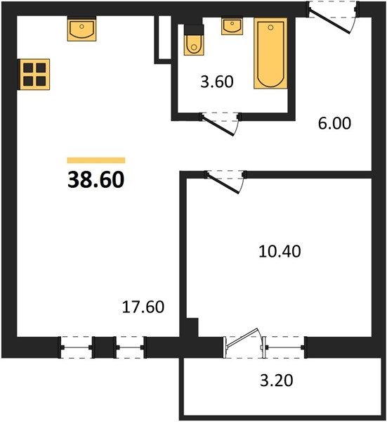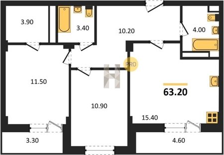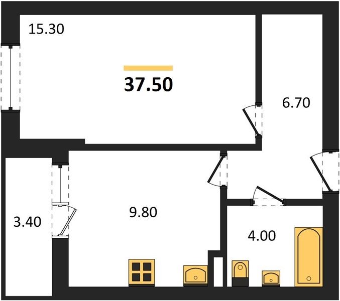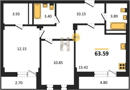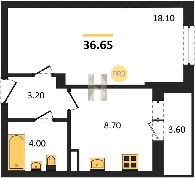 Площадь квартир разная: от 26 (для небольших однокомнатных объектов) до 79 квадратных метров (для трехкомнатных).