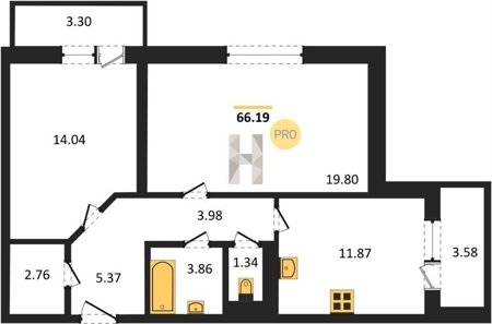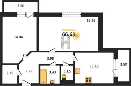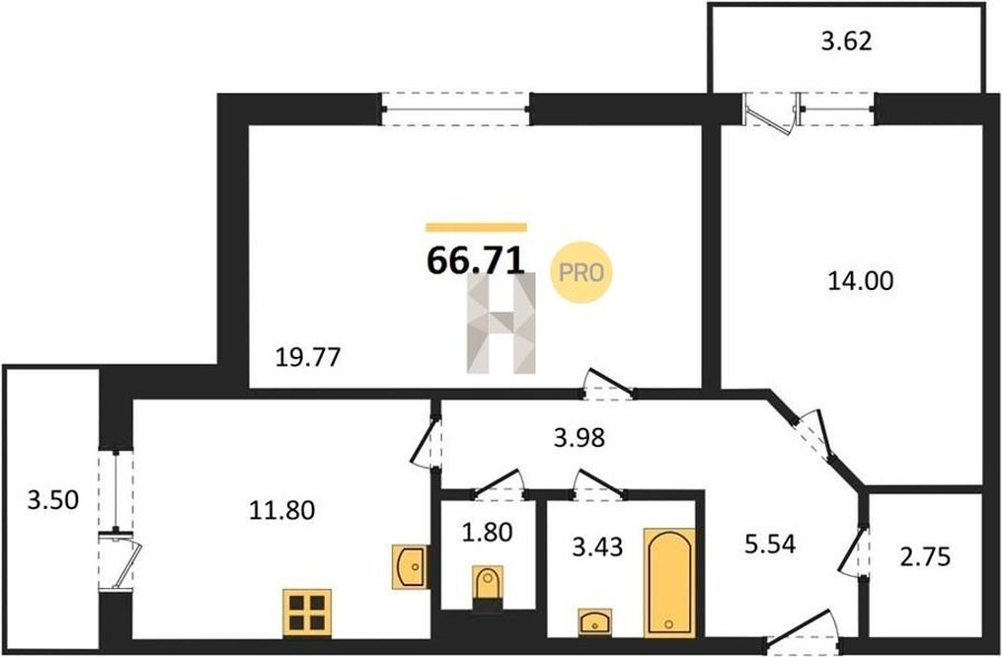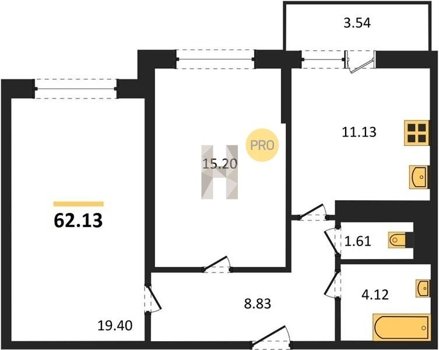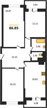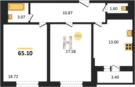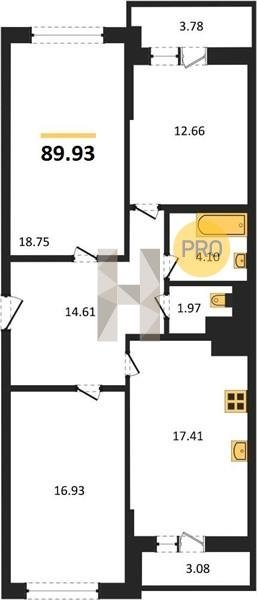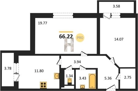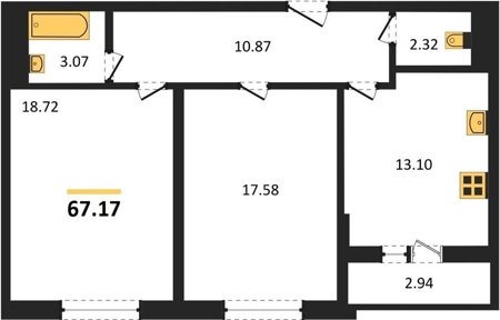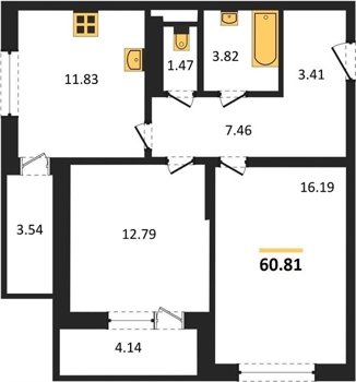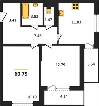 Площадь от 60.75 м2
