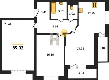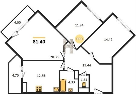 Площадь от 80.8 м2