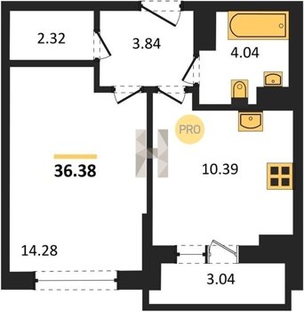 Площадь от 36.38 м2