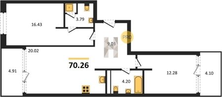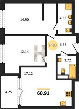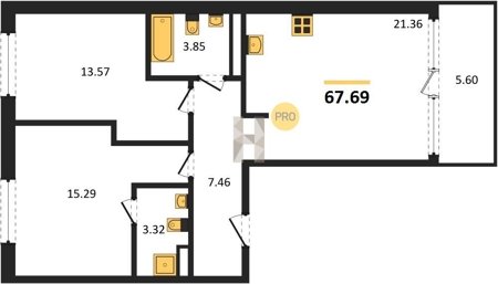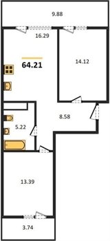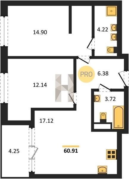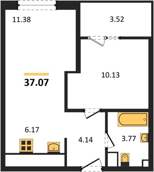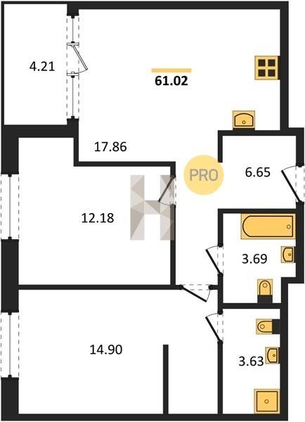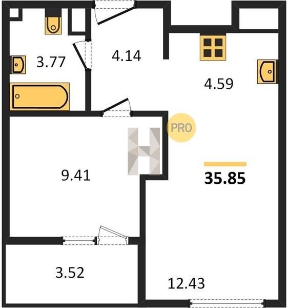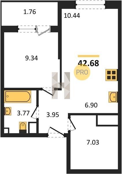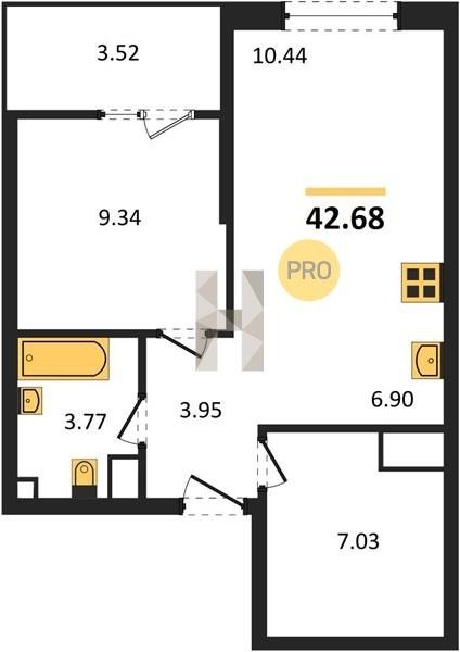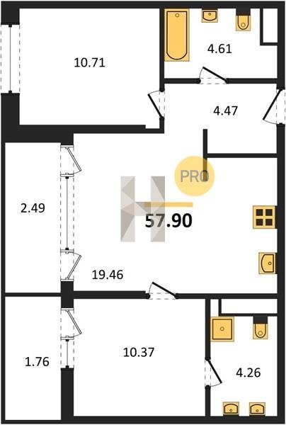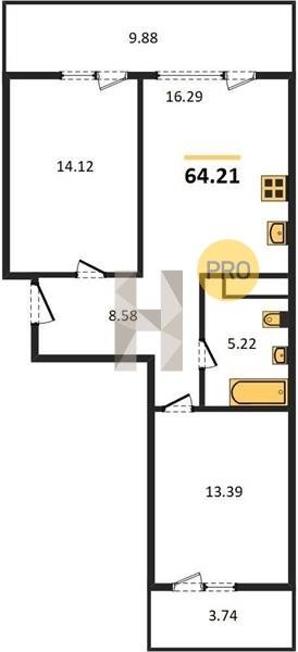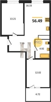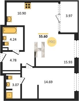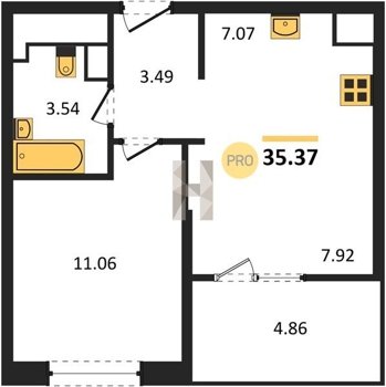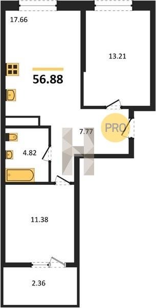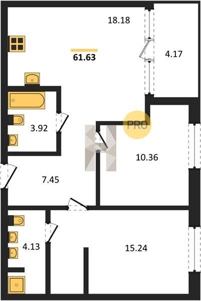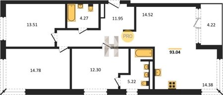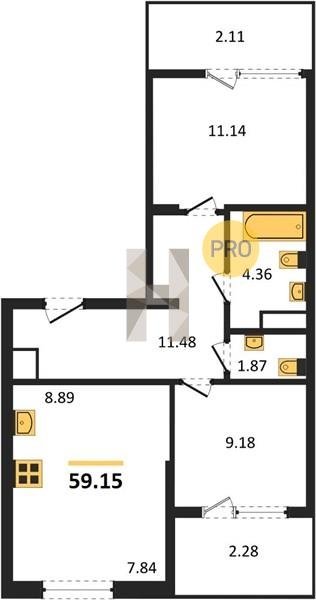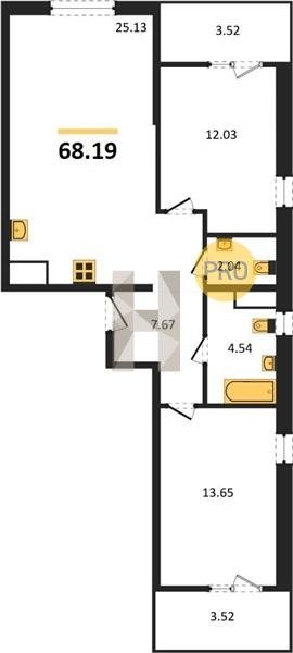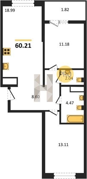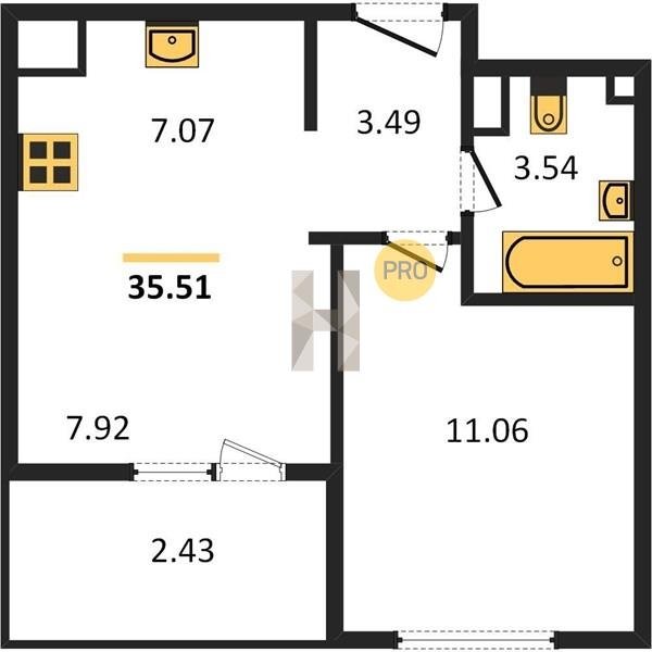 Запланированы различные планировки квартир, площадью планировок от 35,51 до 90,39 кв.м. Высота потолков от 2,7 до 3 метров, из-за чего в квартирах больше света и воздуха.