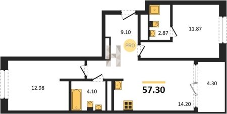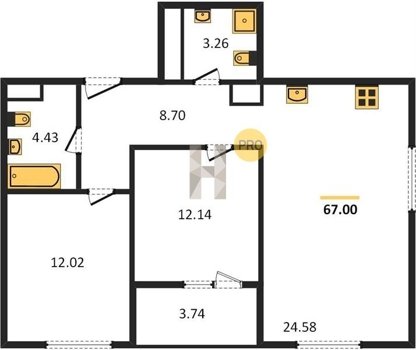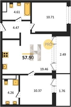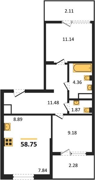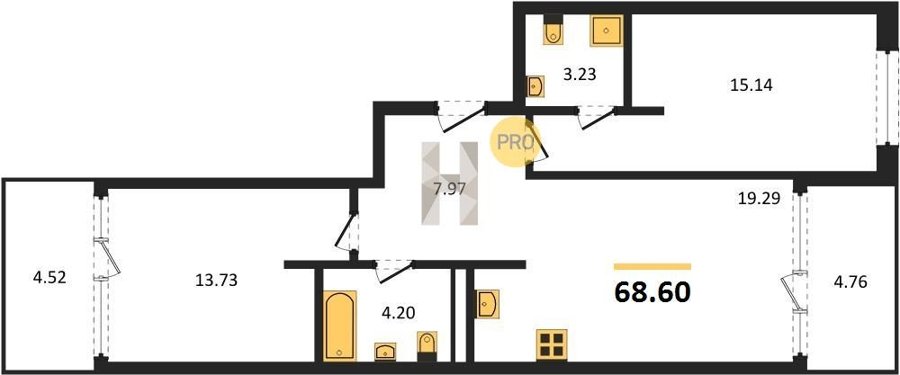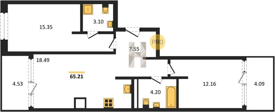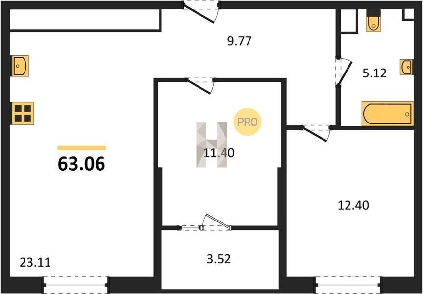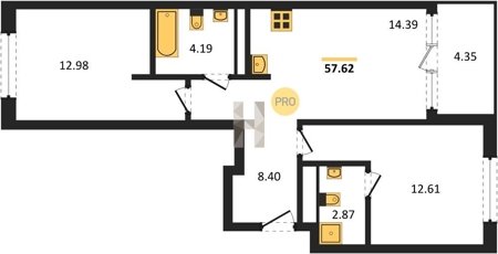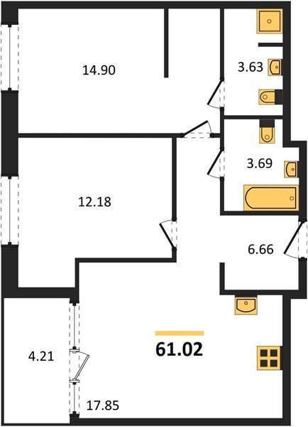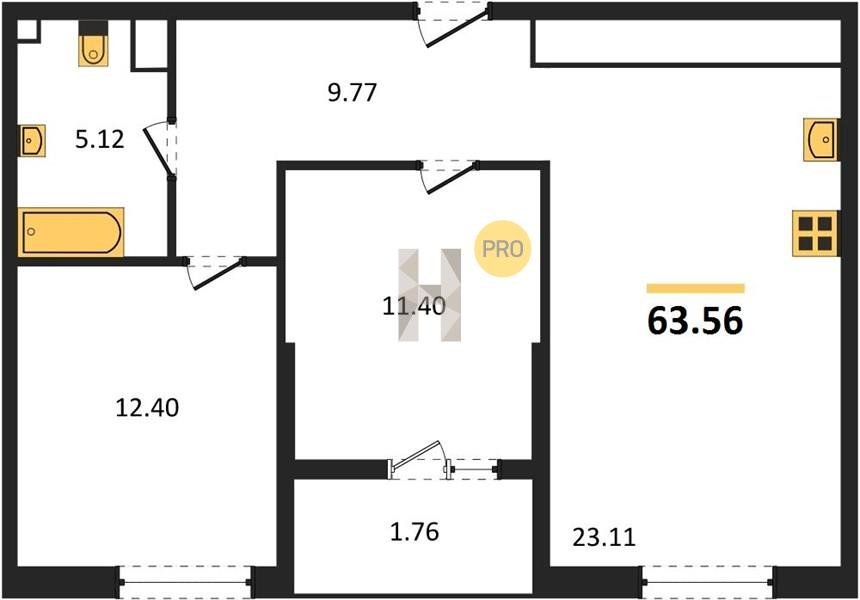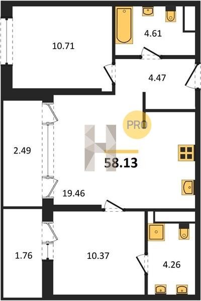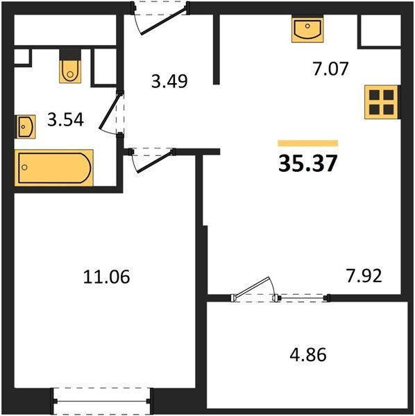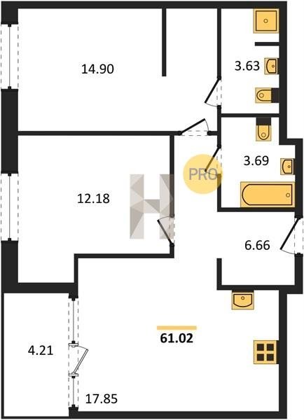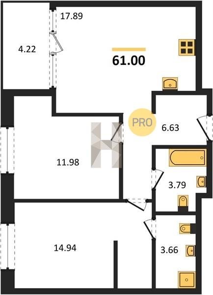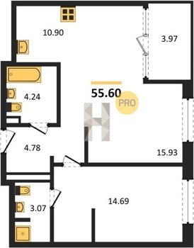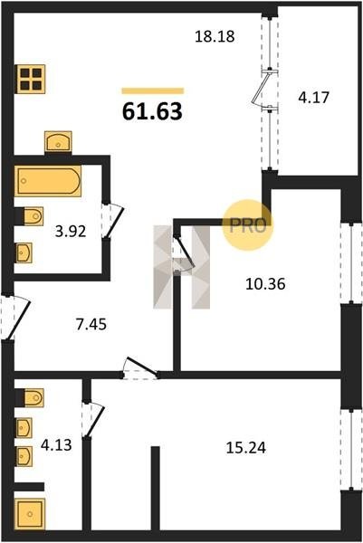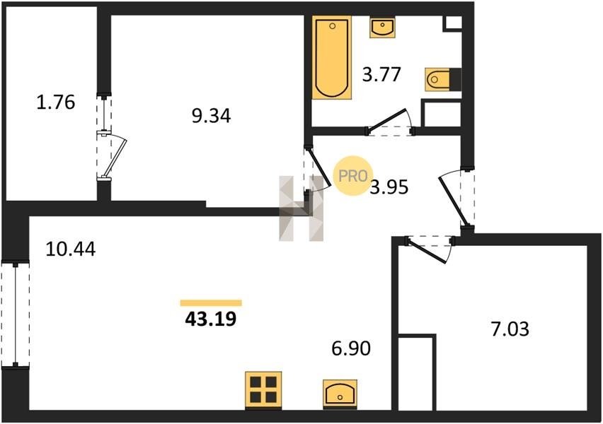 Запланированы различные планировки квартир, площадью планировок от 35,51 до 90,39 кв.м. Высота потолков от 2,7 до 3 метров, из-за чего в квартирах больше света и воздуха.