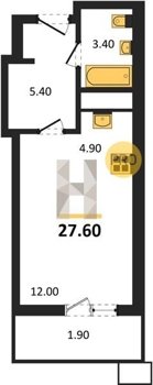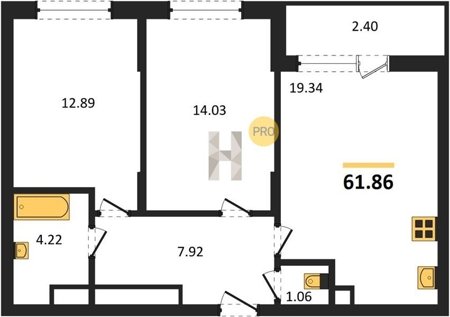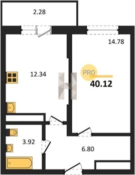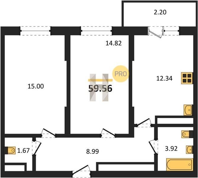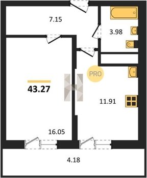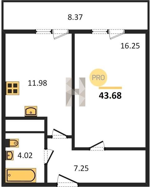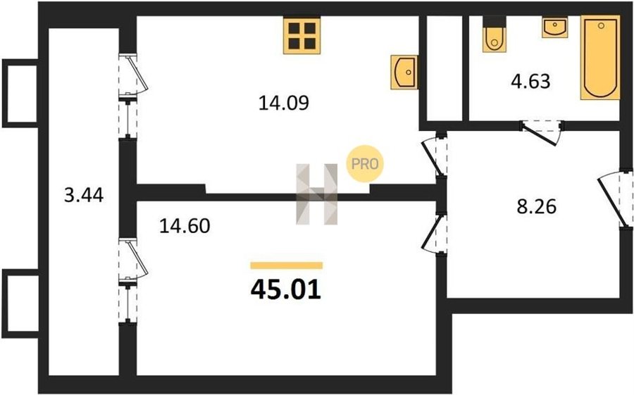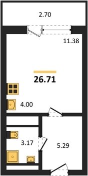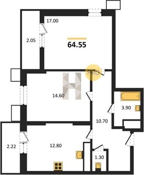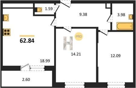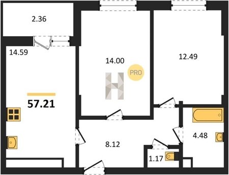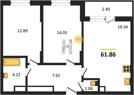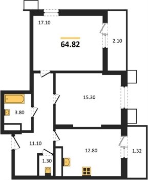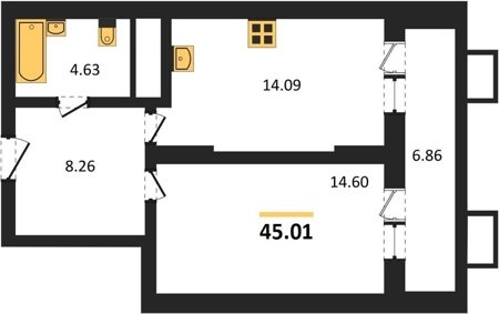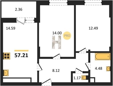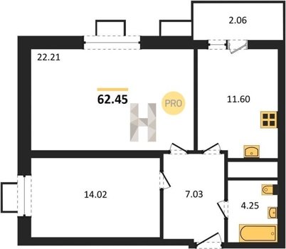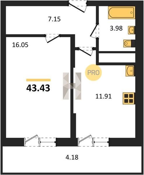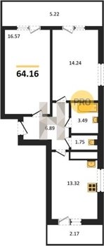 Площадь от 22.46 м2