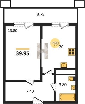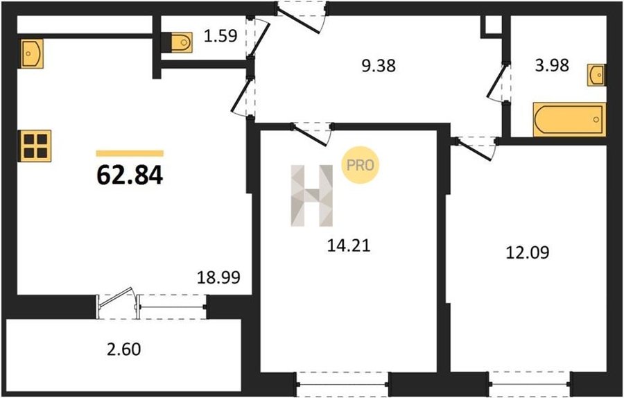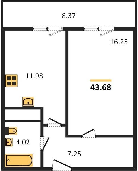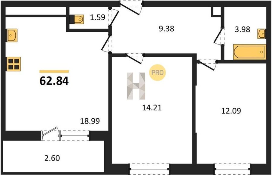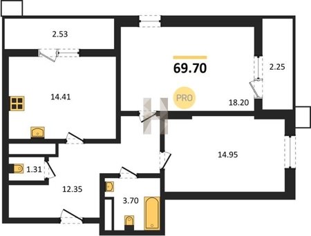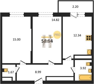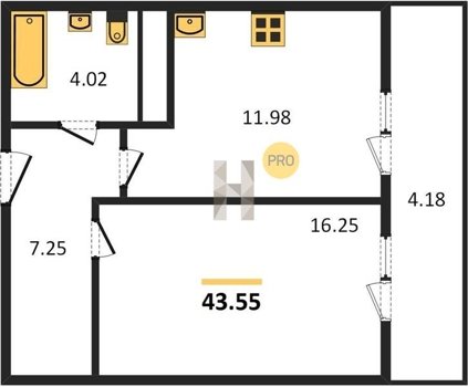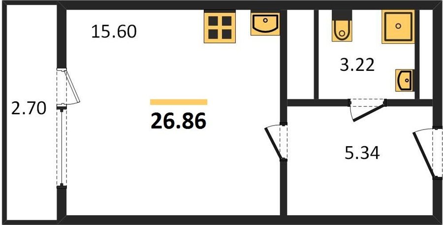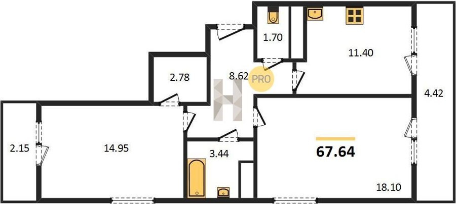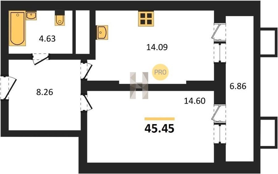 Площадь от 22.46 м2