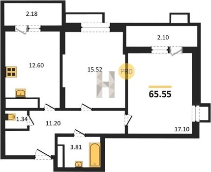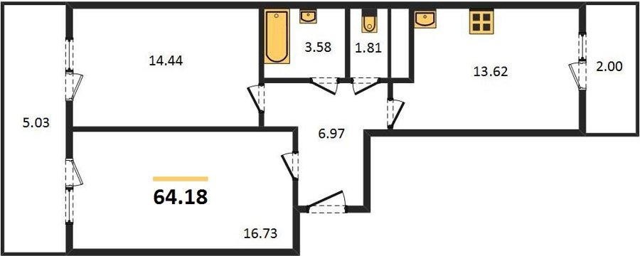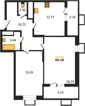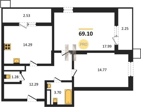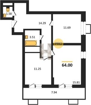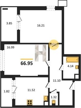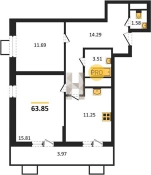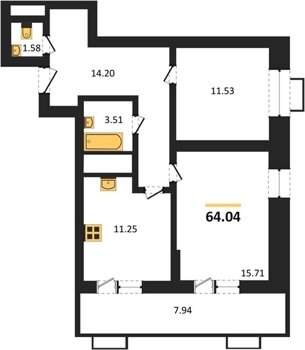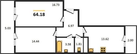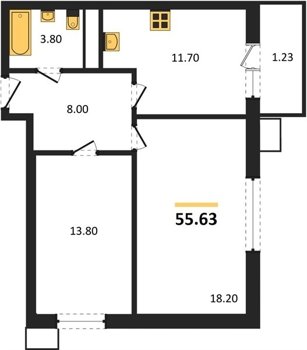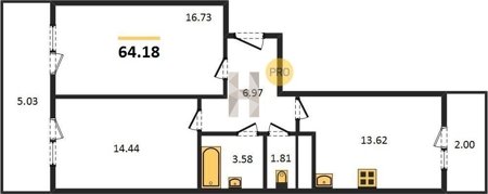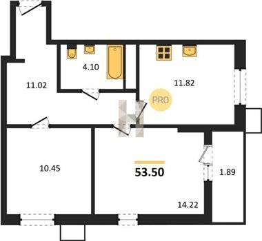 Площадь от 53.5 м2