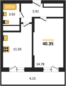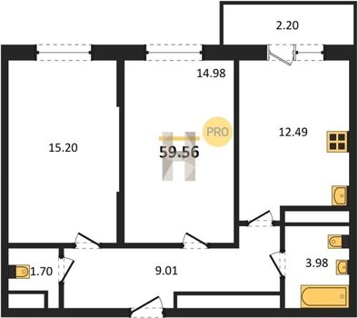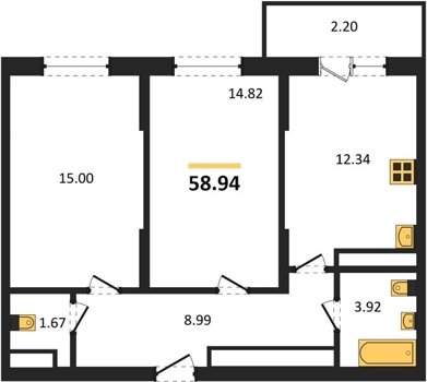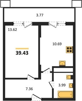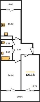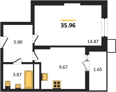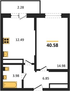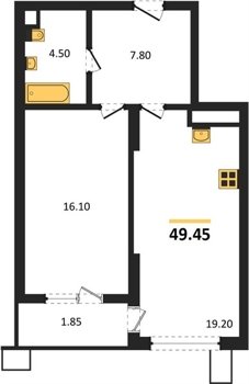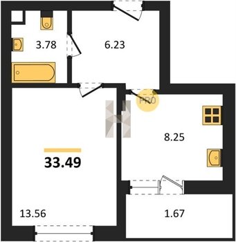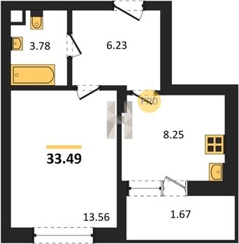 Площадь от 33.49 м2
