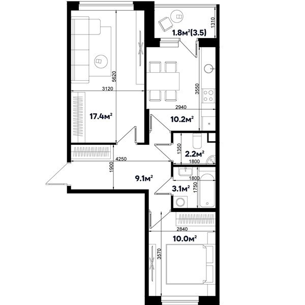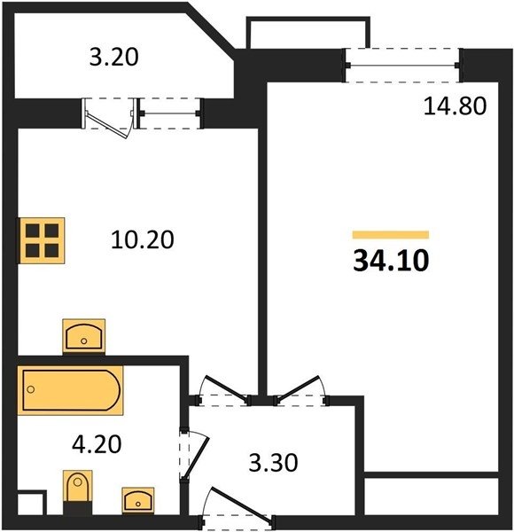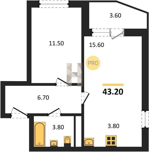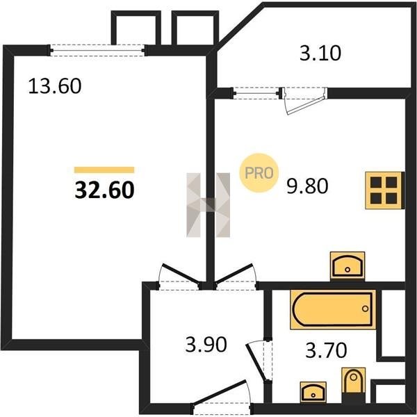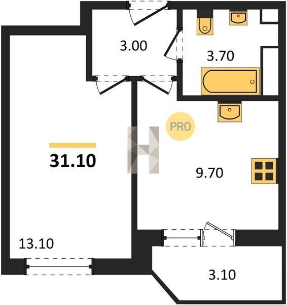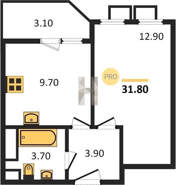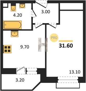 Площадь от 31.6 м2