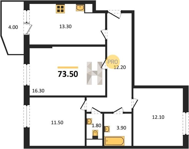 Площадь от 73.5 м2