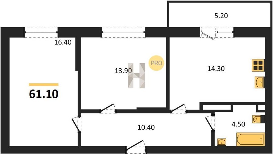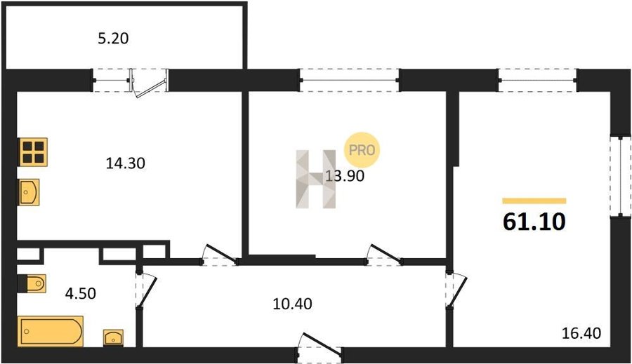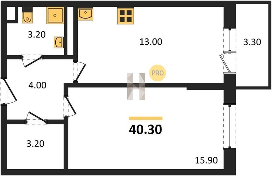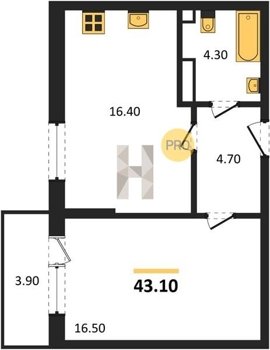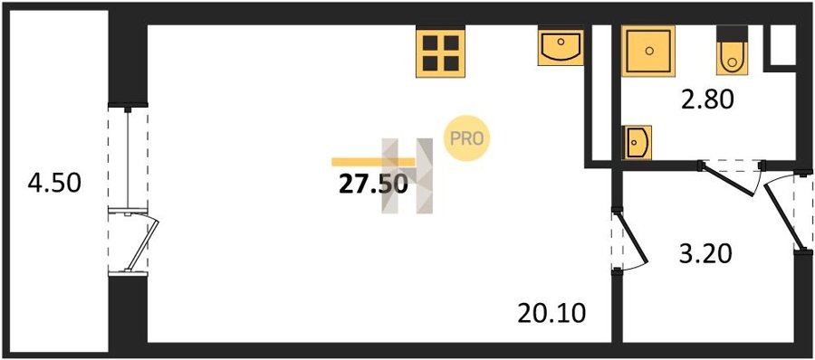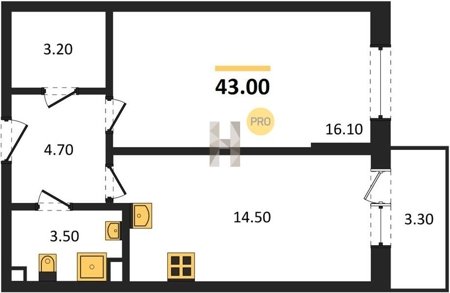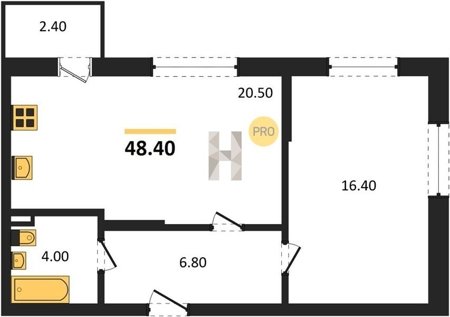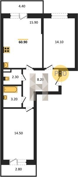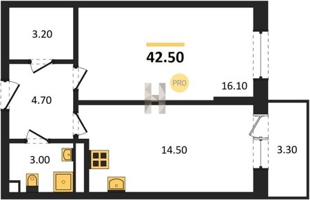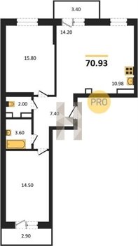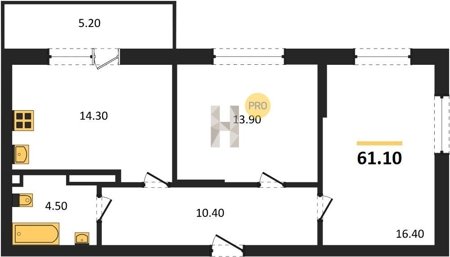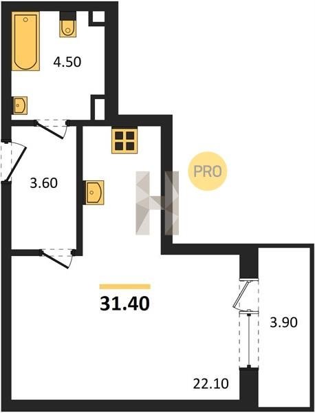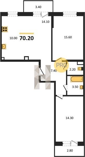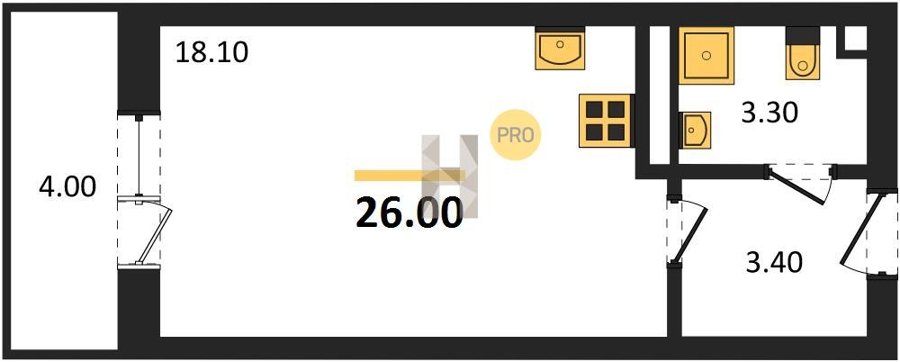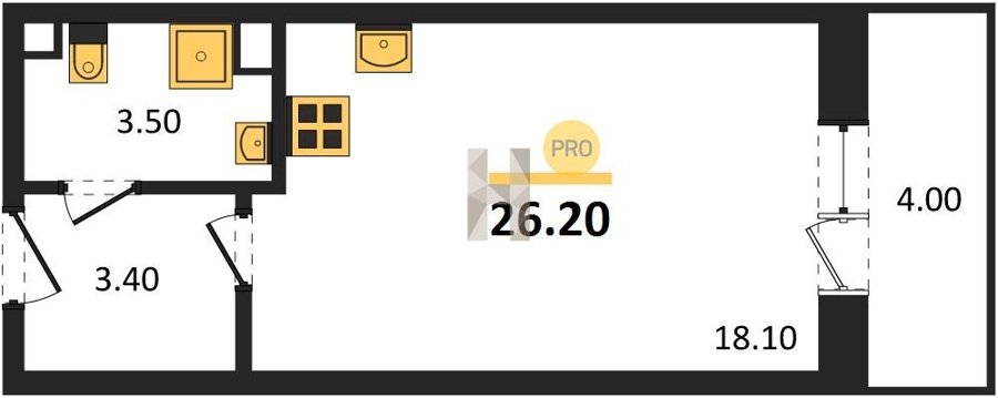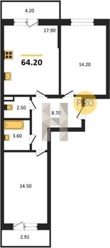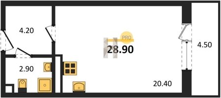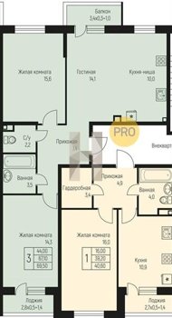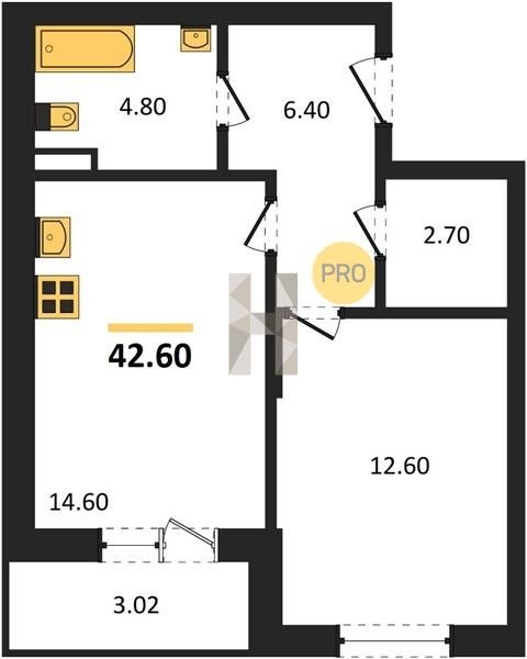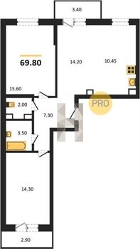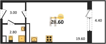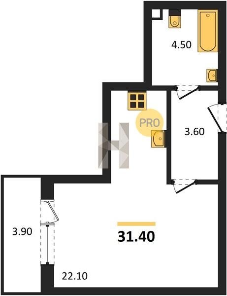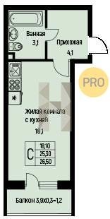 Площадь от 25.6 м2