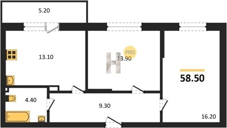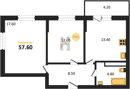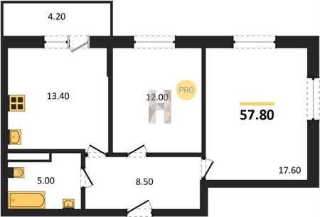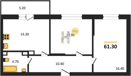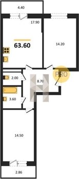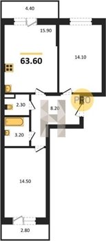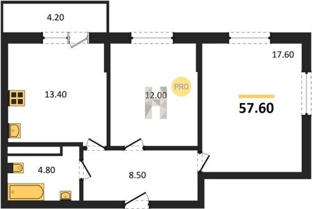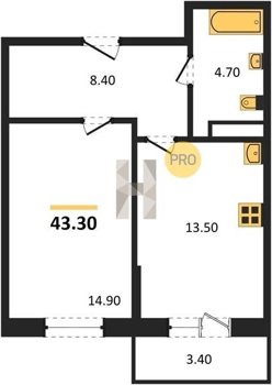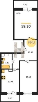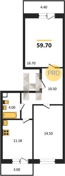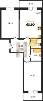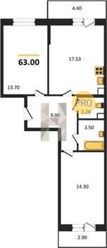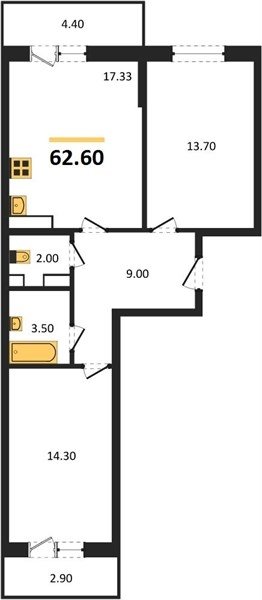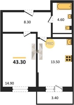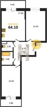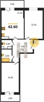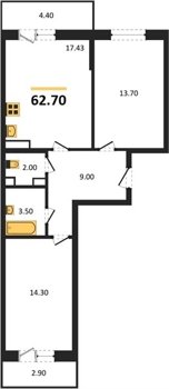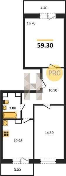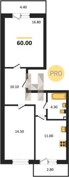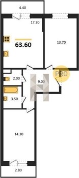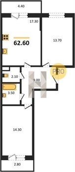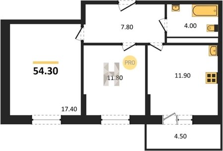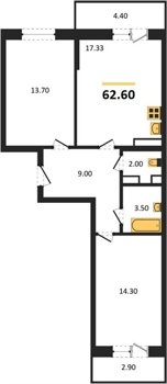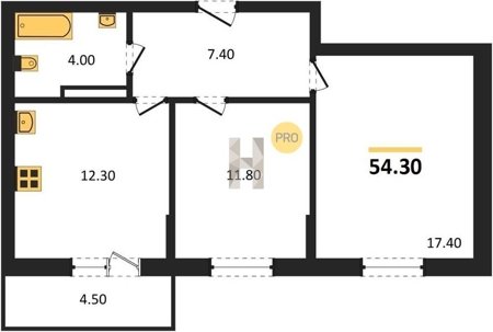 Площадь от 54.3 м2