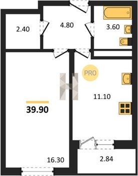 Площадь от 36 м2