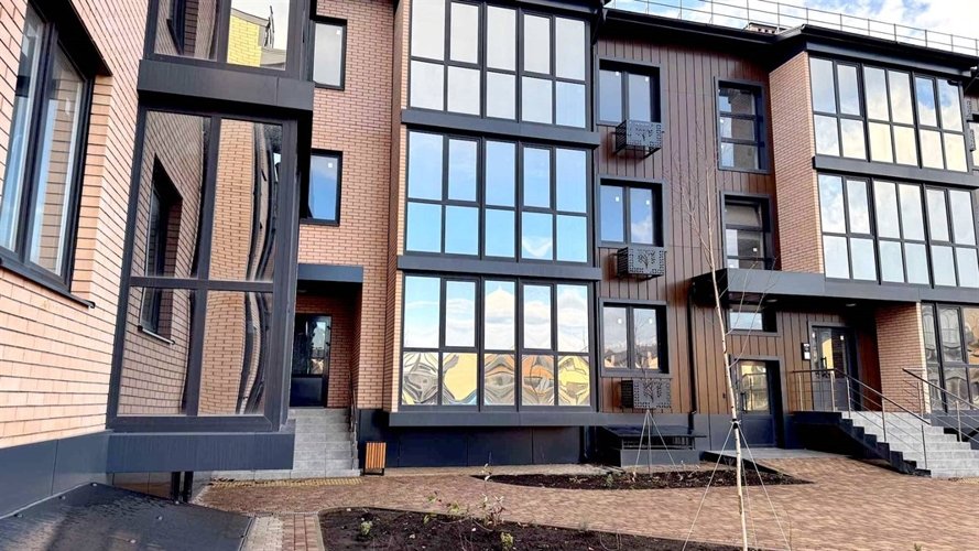 Комплекс комфорт-класса отличается малоэтажностью – всего 3 этажа. Дома построены по монолитно-кирпичной технологии, хорошо держат тепло зимой. Светло-желтые и песочные оттенки в оформлении фасада сочетаются с зеленью пригородных насаждений. Большие окна и оформленные лоджии дают возможность организовать дополнительную зону отдыха.